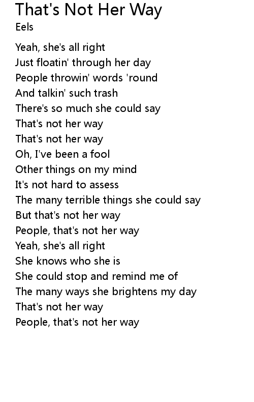 | Song | That's Not Her Way |