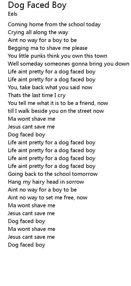 | [01:37.208] | Life aint pretty for a dog faced boy |