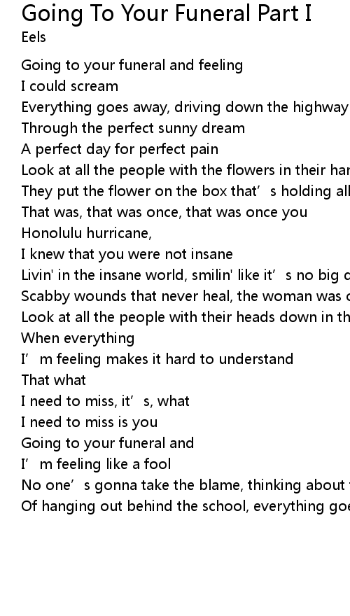 | Going to your funeral and | |