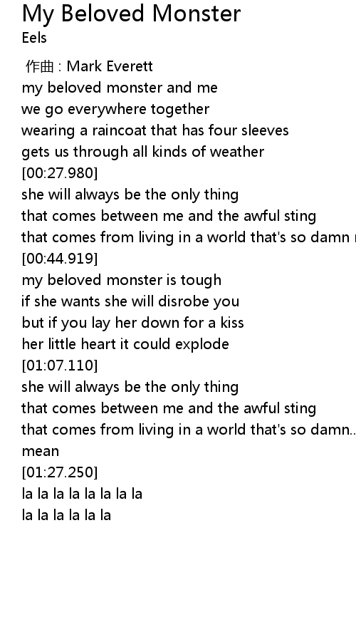 | [00:10.620] | my beloved monster and me |