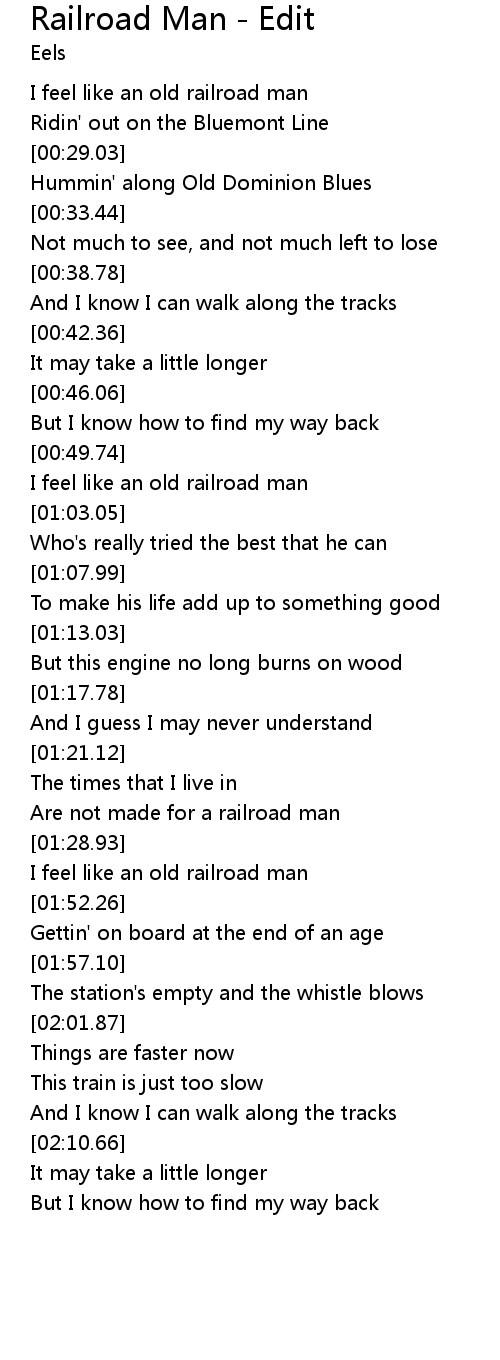 I feel like an old railroad man |