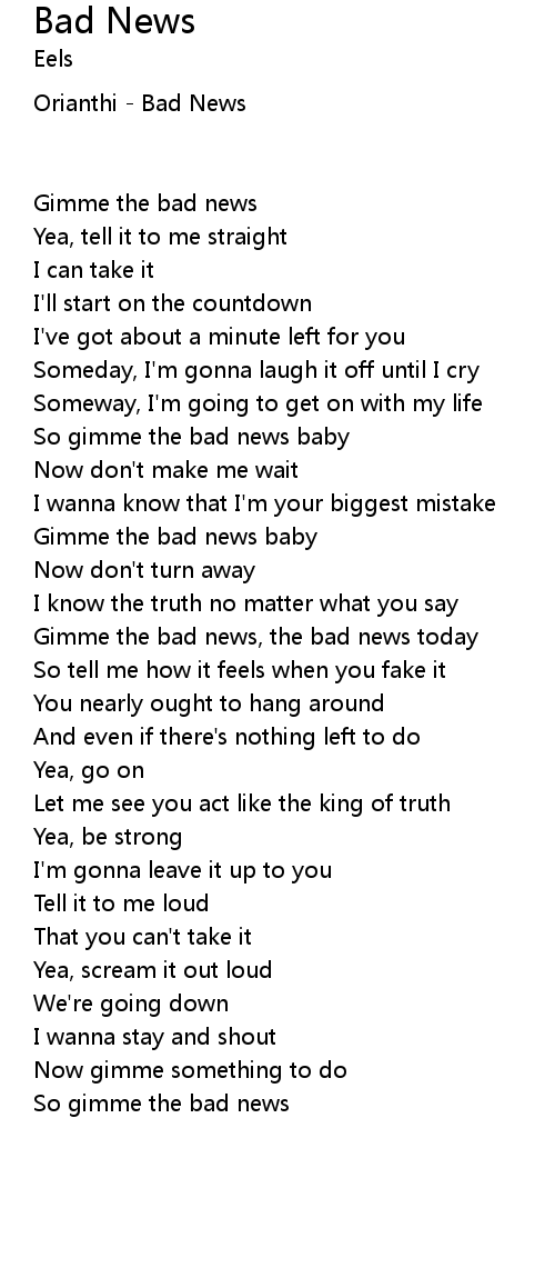 Gimme the bad news, the bad news today |
