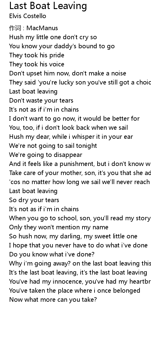 | Song | Last Boat Leaving |