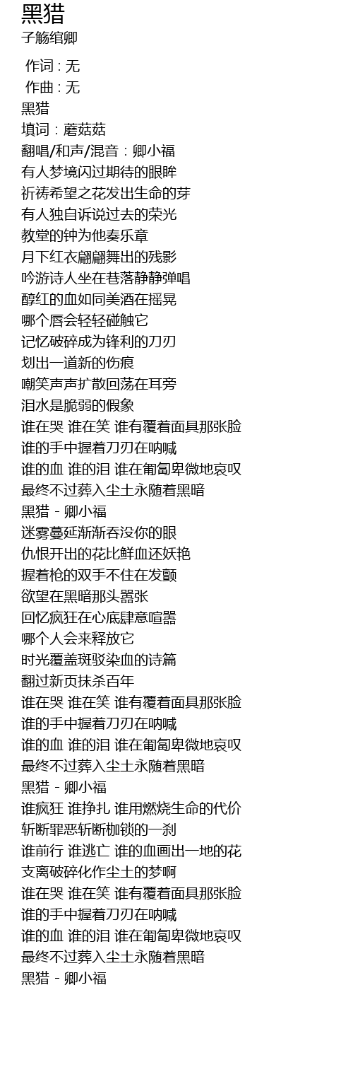 | [00:03.170] | 翻唱/和声/混音:卿小福 |