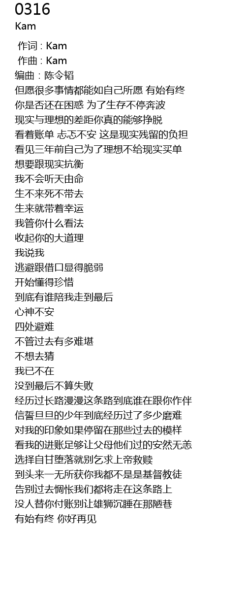 | [00:00.000] | 作词 : Kam |
