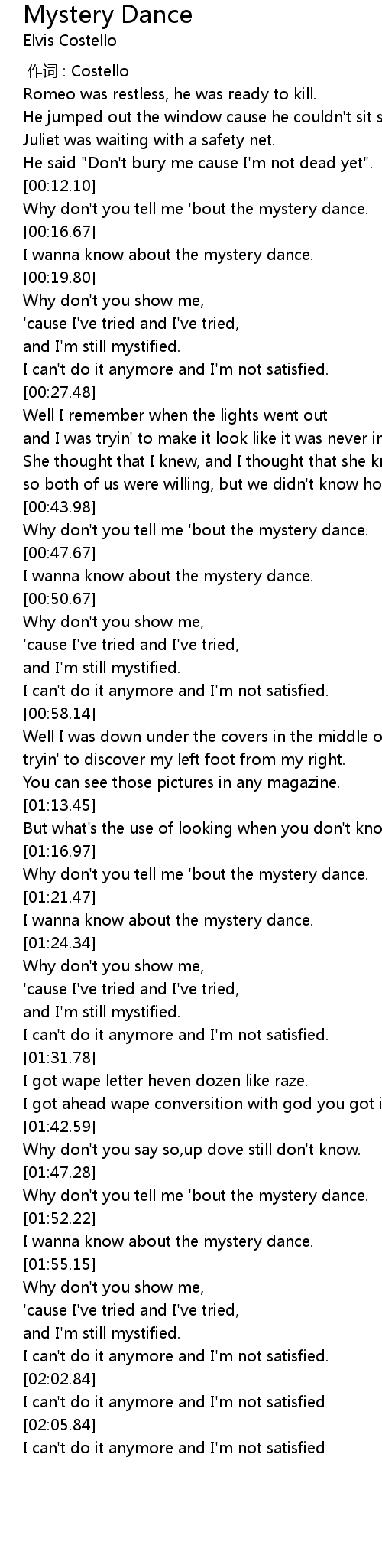 | [00:14.48] | Why don't you tell me 'bout the mystery dance. |