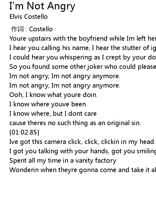 | [00:35.21] | Im not angry, Im not angry anymore. |