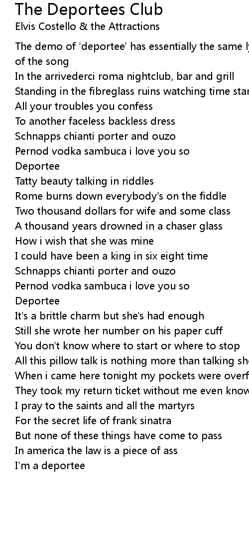 | Song | The Deportees Club |