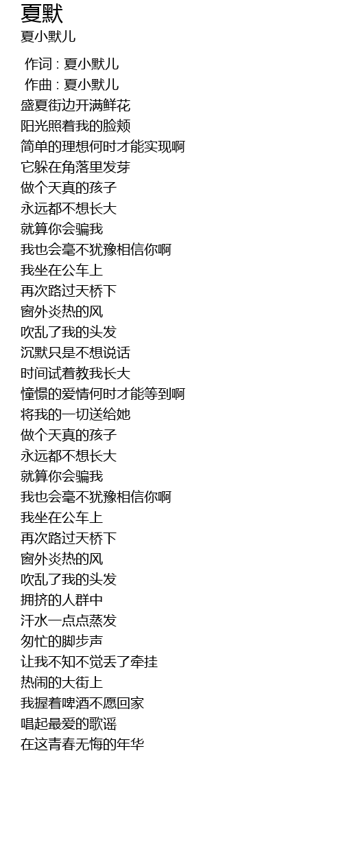 | [00:00.000] | 作词 : 夏小默儿 |