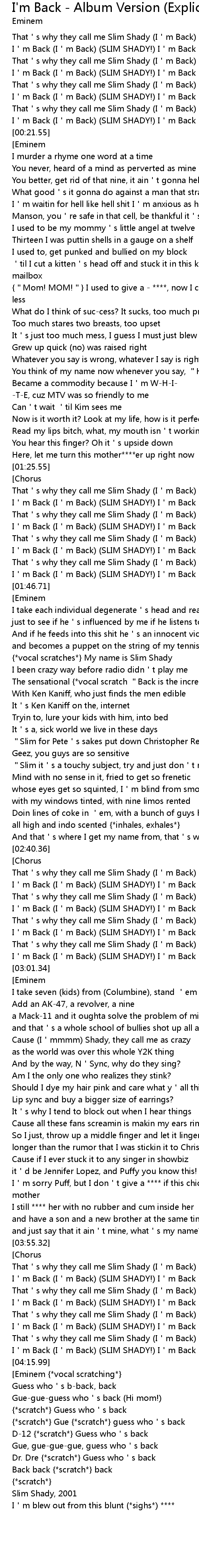 | [02:53.55] | I m Back I m Back SLIM SHADY! I m Back |