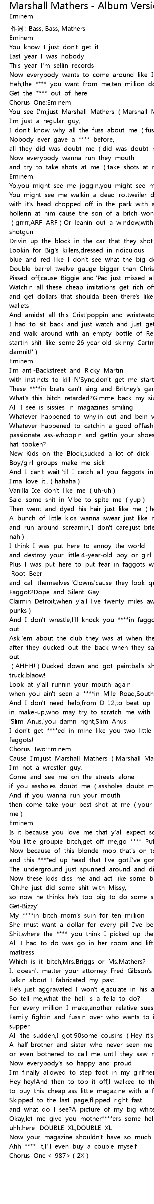 | [02:40.59] | Cause I' m, just Marshall Mathers Marshall Mathers |