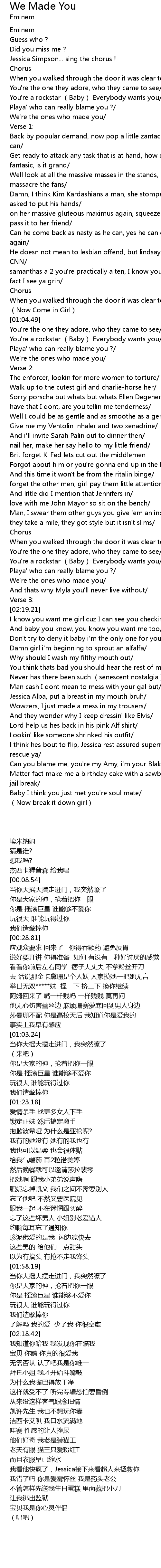 | [02:39.96] | You think thats bad you should hear the rest of my album/ |