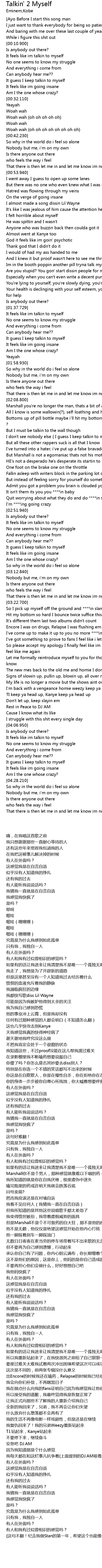 | [02:22.710] | I don't see nobody else ( I guess I keep talkin to myself) |
