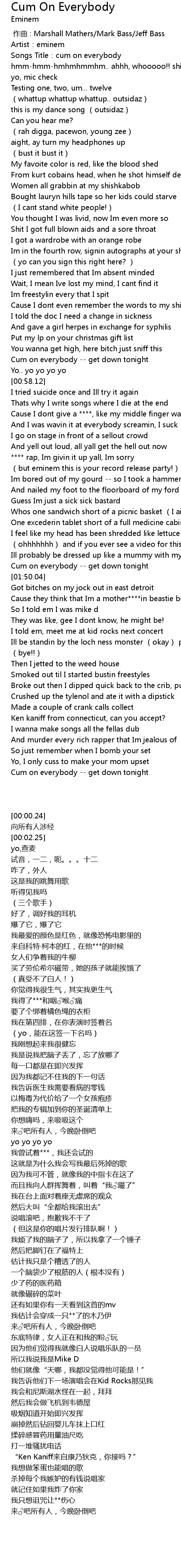 | [00:00.00] | 作曲 : Marshall Mathers/Mark Bass/Jeff Bass |