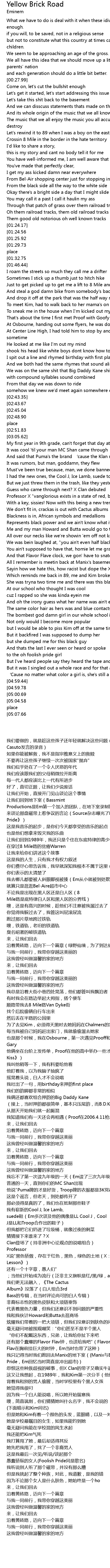 | [00:49.06] | Crossin 8 Mile in the border in the hate territory |