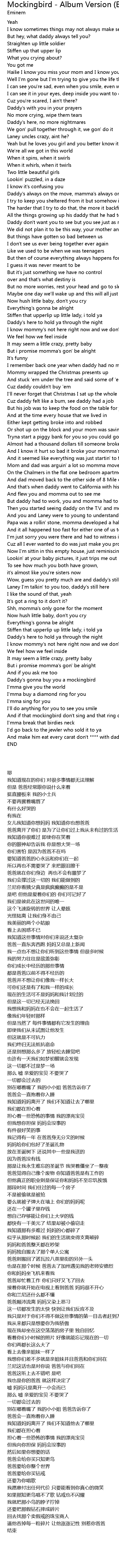 | [00:22.63] | Hailie I know you miss your mom and I know you miss your dad |