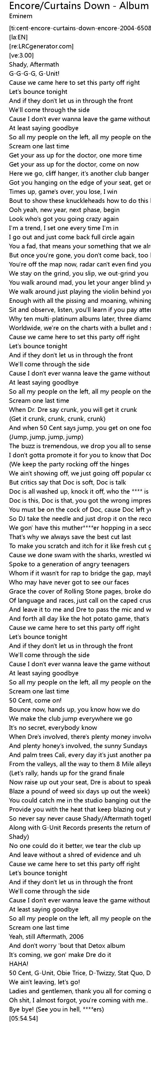 | [04:39.91] | 50 Cent, G-Unit, Obie Trice, D-Twizzy, Stat Quo, Dr. Dre |