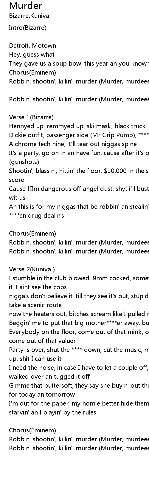 | Robbin, shootin', killin', murder (Murder, murdeeeerrrr) |