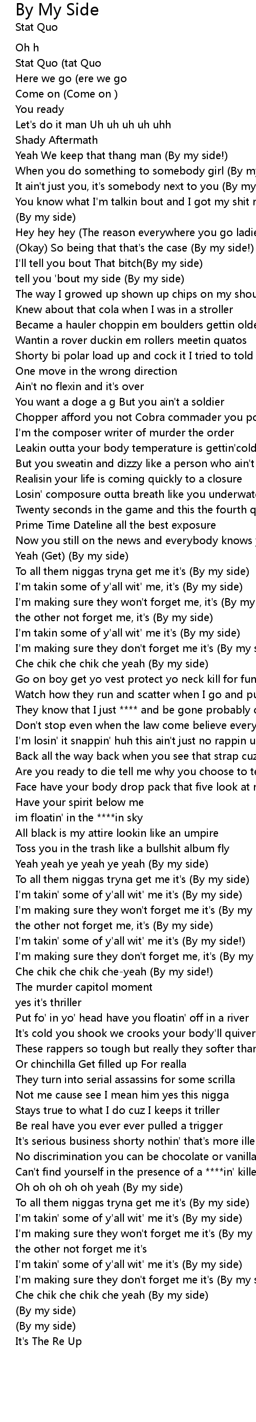 To all them niggas tryna get me it's (By my side) |