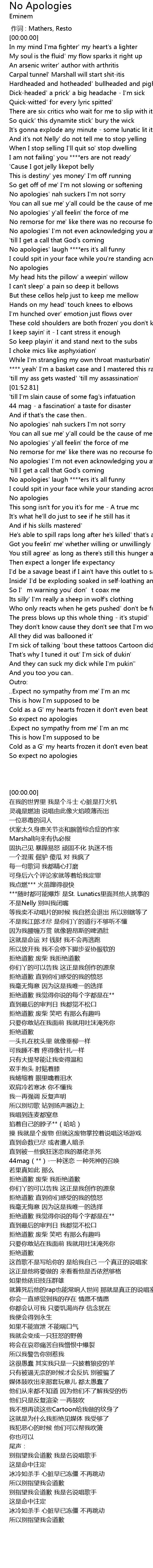| [00:00.00] | 作词 : Mathers, Resto |
