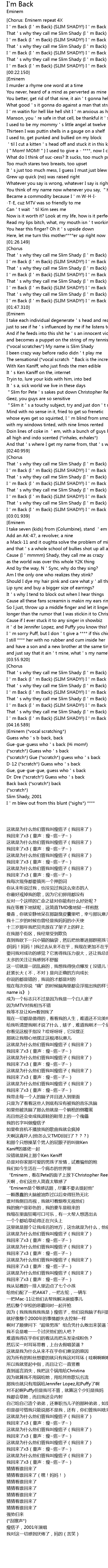 | [01:45.69] | I m Back I m Back SLIM SHADY! I m Back |