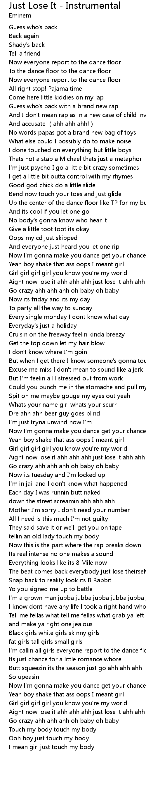 | [02:30.24] | The beat comes back everybody just lose theirselves |