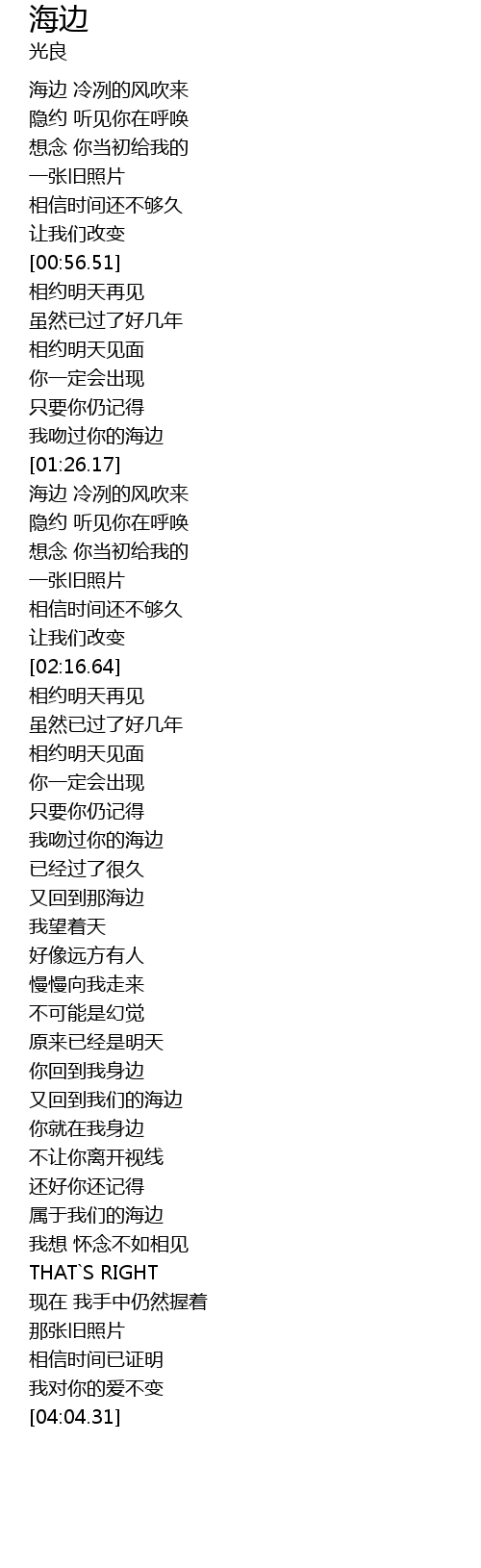 | [03:26.28] | 属于我们的海边 |
