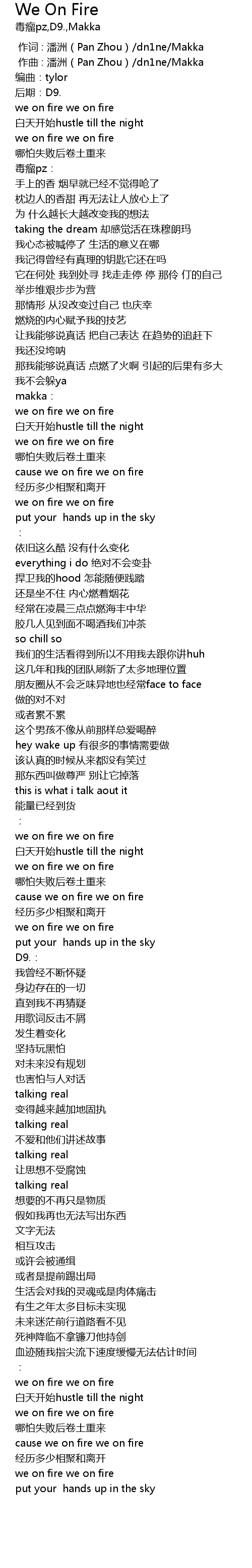 | [01:01.766] | 那我能够说真话 点燃了火啊 引起的后果有多大 我不会躲ya |
