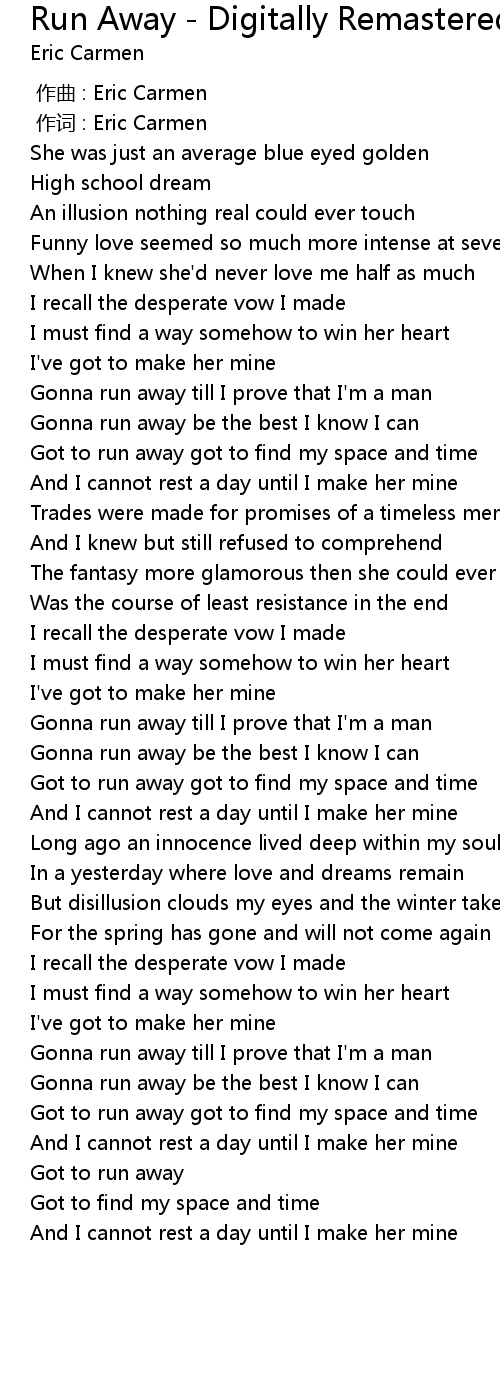| [03:10.81] | Got to run away got to find my space and time |