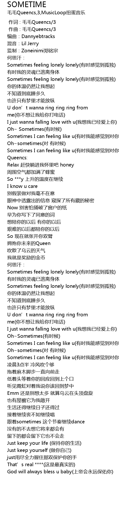 | [01:08.747] | Oh~sometimes(对 有时候) |