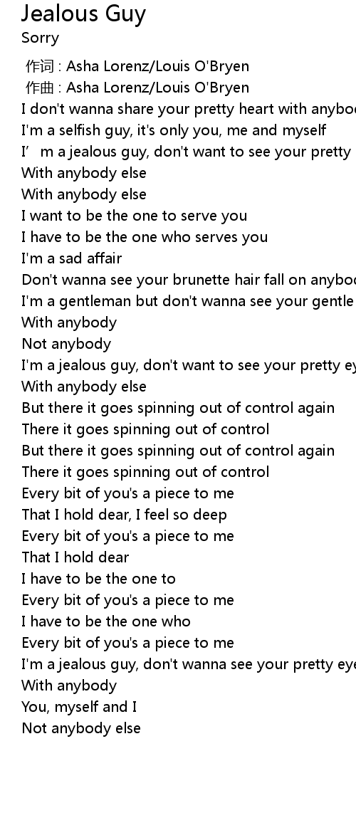 | [00:32.00] | I’m a jealous guy, don't want to see your pretty eyes |