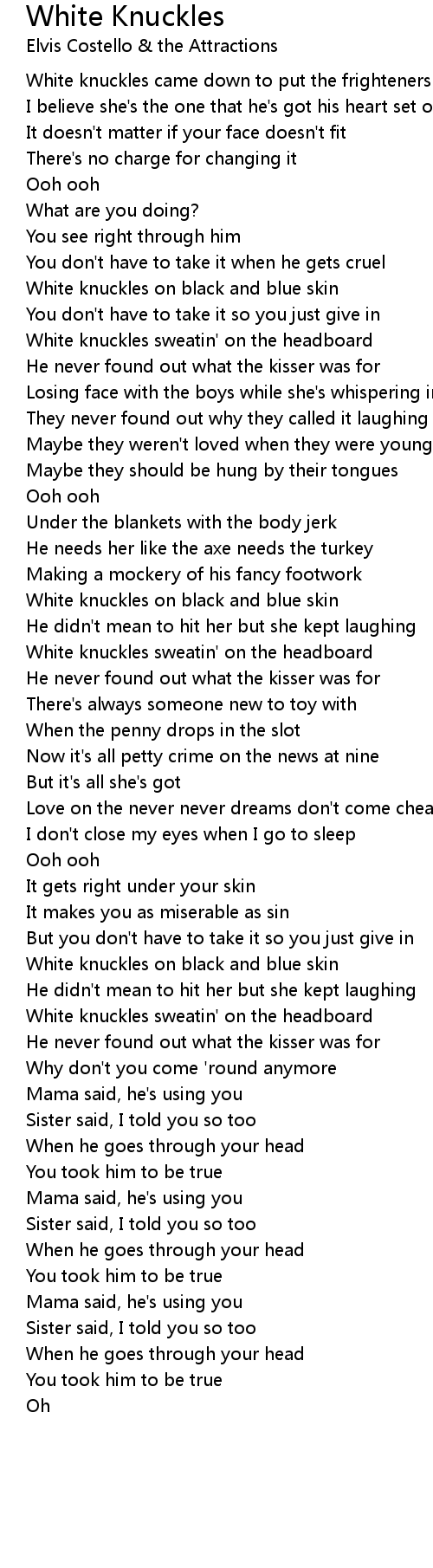 White knuckles sweatin' on the headboard |