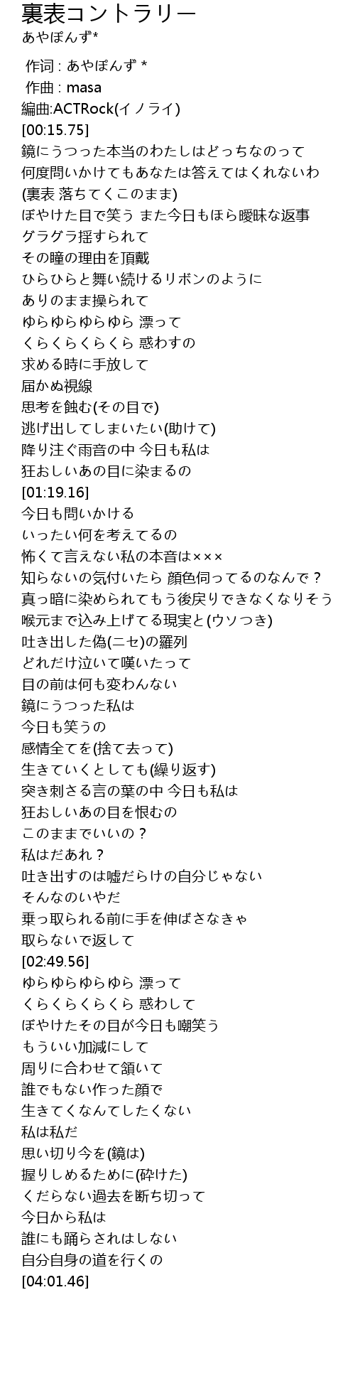 | [00:51.44] | ありのまま操られて |