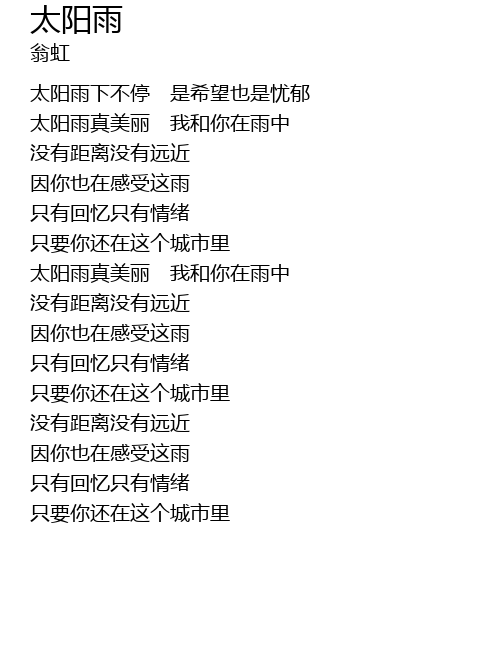 | [00:40.18] | 太阳雨真美丽 我和你在雨中 |