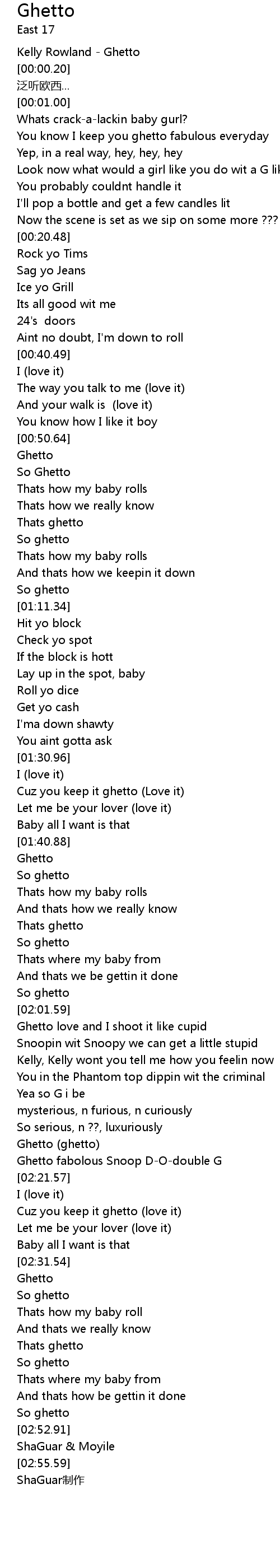 | [02:19.73] | Ghetto ghetto |