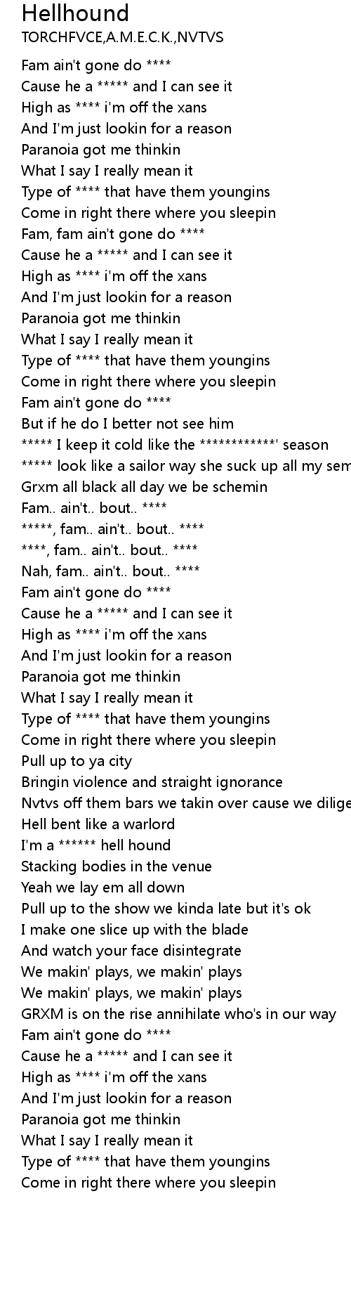 | [01:33.48] | I'm a ****** hell hound |