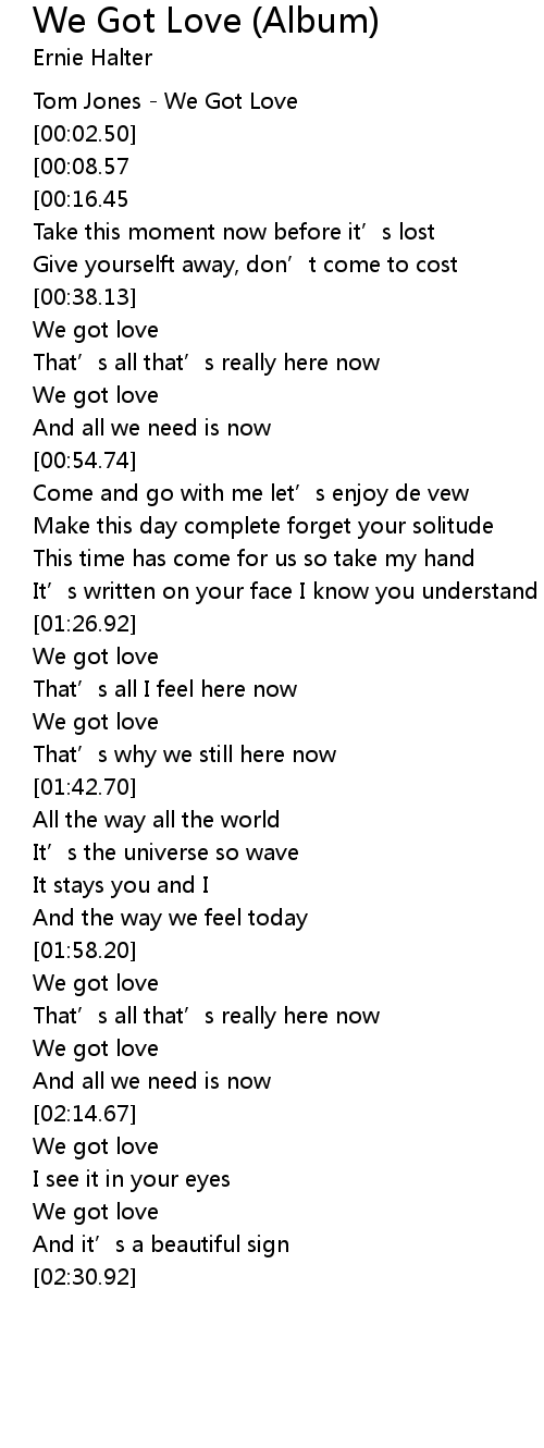 | [00:00.69] | Tom Jones We Got Love |
