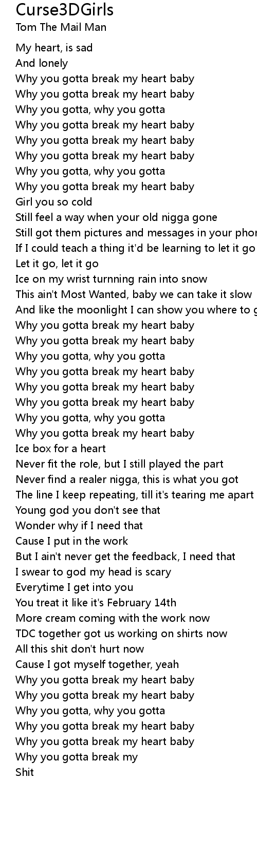 Why you gotta break my heart baby |