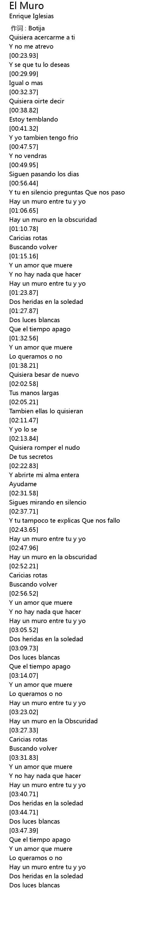 | [03:55.27] | Hay un muro entre tu y yo |