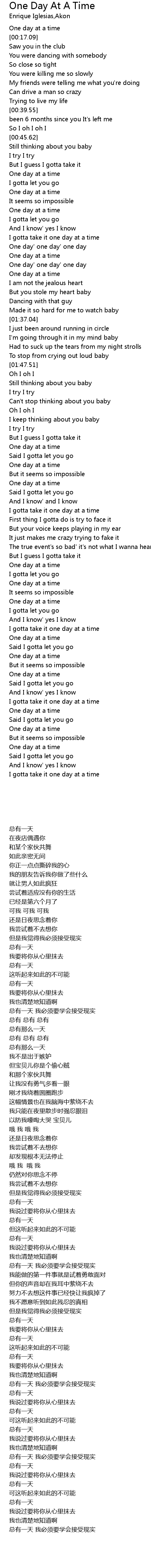 | [00:15.34] | One day at a time |