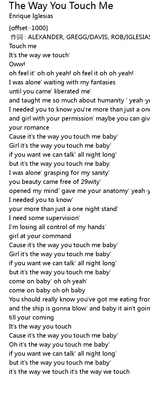 | [03:04.17] | it' s the way we touch it' s the way we touch |