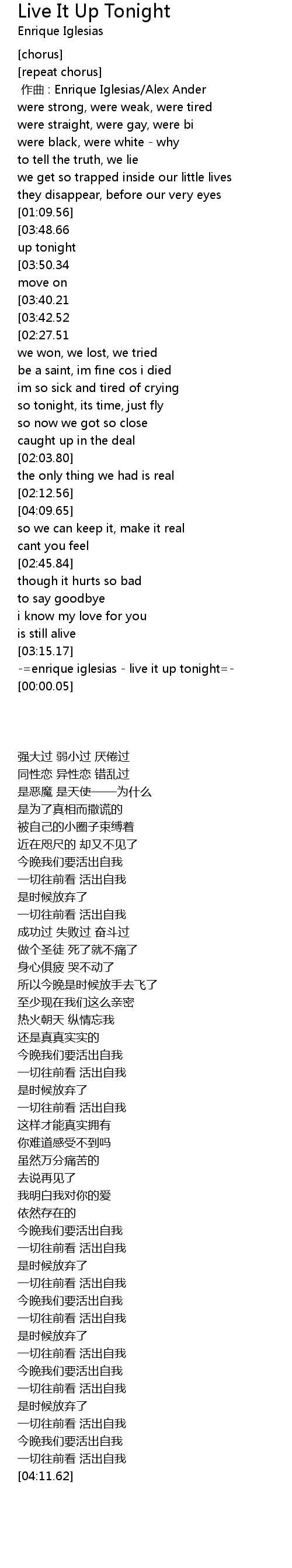 | [00:00.00] | 作曲 : Enrique Iglesias/Alex Ander |