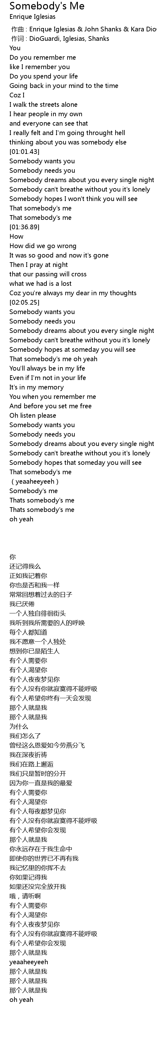| [03:16.60] | Somebody can't breathe without you it's lonely |