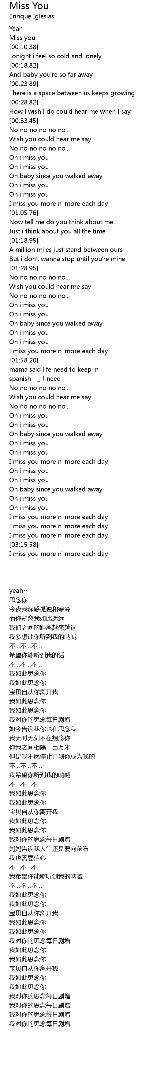 I miss you more n' more each day |