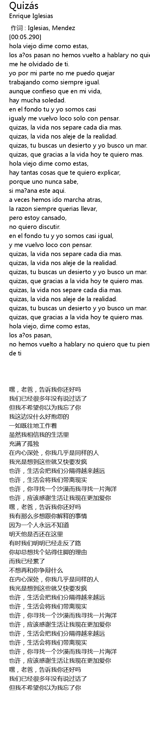 | [00:00.00] | zuò cí : Iglesias, Mendez |