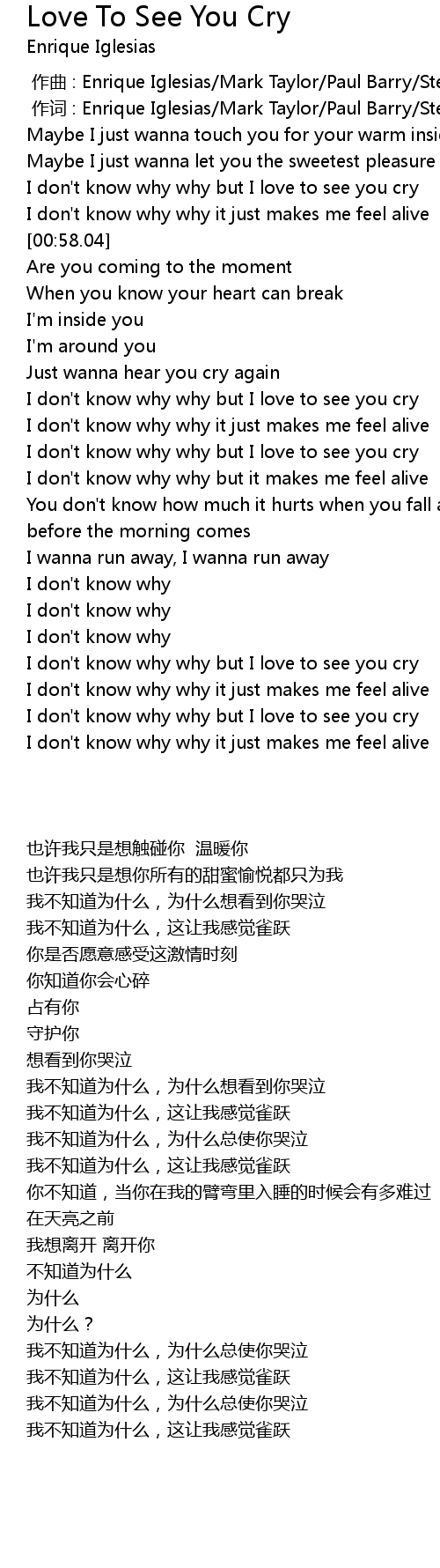 | [00:41.04] | I don' t know why why but I love to see you cry |