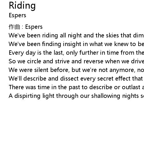 | We' ve been riding all night and the skies that diminish are right to be known | |