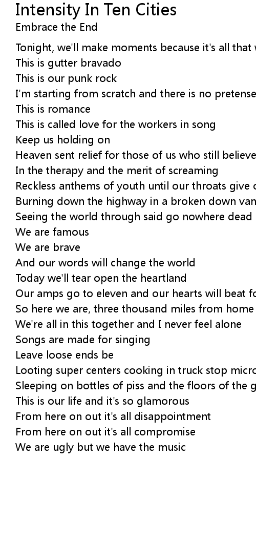Reckless anthems of youth until our throats give out |