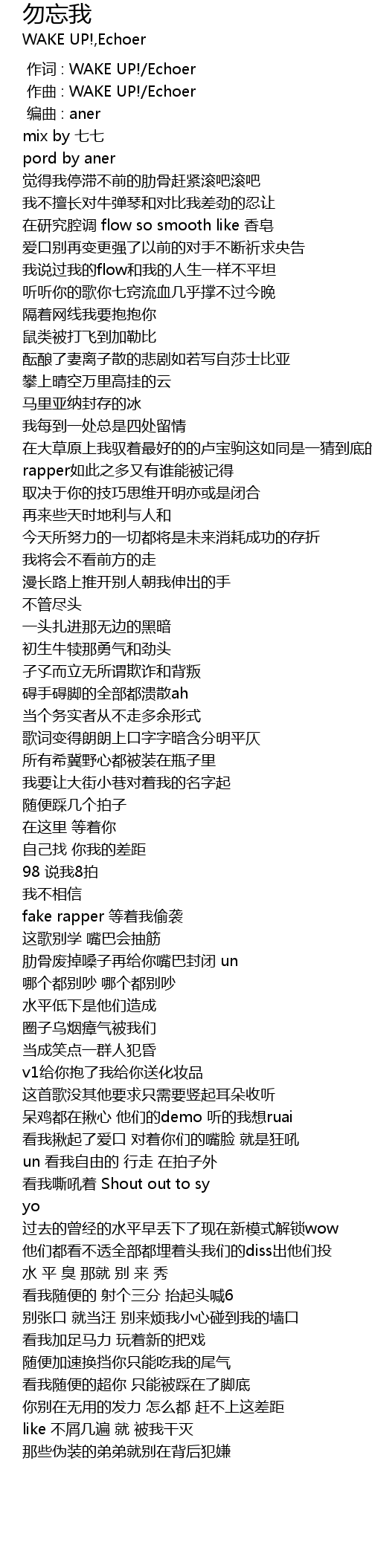 | [00:00.000] | zuò cí : WAKE UP! Echoer |