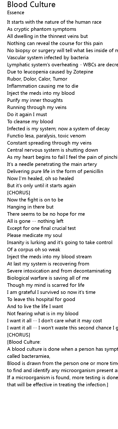 A blood culture is done when a person has symptoms of a blood infection, also called bacteramiea, |
